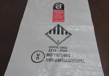 Sack aus weißem gewebtem Polypropylen für die Verwertung von asbestbelasteten Abfällen